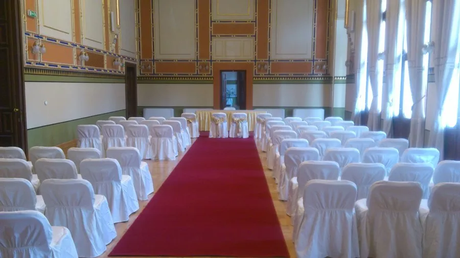 Prvo vjenčanje je obavljeno u reprezentativnoj Svečanoj sali, koja je poput samog objekta, izgrađena u pseudomaurskom stilu s dekorativnim elementima orijentalne arhitekture. Samu autentičnu ljepotu ambijenta oplemenio je, za ovu priliku, postavljen prikladan namještaj sa stolicama i stolovima sa presvlakama u karakterističnoj bijeloj boji. Cvjetna dekoracija, muzika i klasično retro-osvjetljenje dvoranu čine još svečanijom.