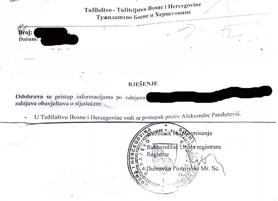 Otvoren postupak je isto što i istraga. Da bi postupak u Tužilaštvu BiH bio otvoren moraju se poduzeti predistražne radnje. Dakle, prijava protiv Aleksandre Pandurević zaprimljena je u Tužilaštvu BiH. U tom istom Tužilaštvu otvoren je i postupak.