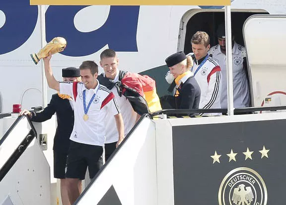 Desetine hiljada navijača reprezentacije Njemačke dočekalo je svoju reprezentaciju u Berlinu. Tamo su stigli sa dva sata zakašnjenja zbog tehničkih problema, prenosi NAP.