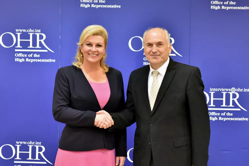 Visoki predstavnik je zahvalio predsjednici Grabar-Kitarović na ulozi koju je Republika Hrvatska imala tokom proteklih godina, kao jedna od potpisnica Daytonskog mirovnog sporazuma i članica Europske unije, u pružanju potpore Bosni i Hercegovini.