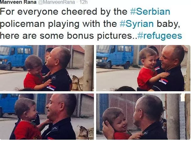 "Za sve one koje je oduševila slika srbijanskog policajca kako se igra sa bebom iz Sirije, evo dodatnih fotografija", napisala je ona pored slika.