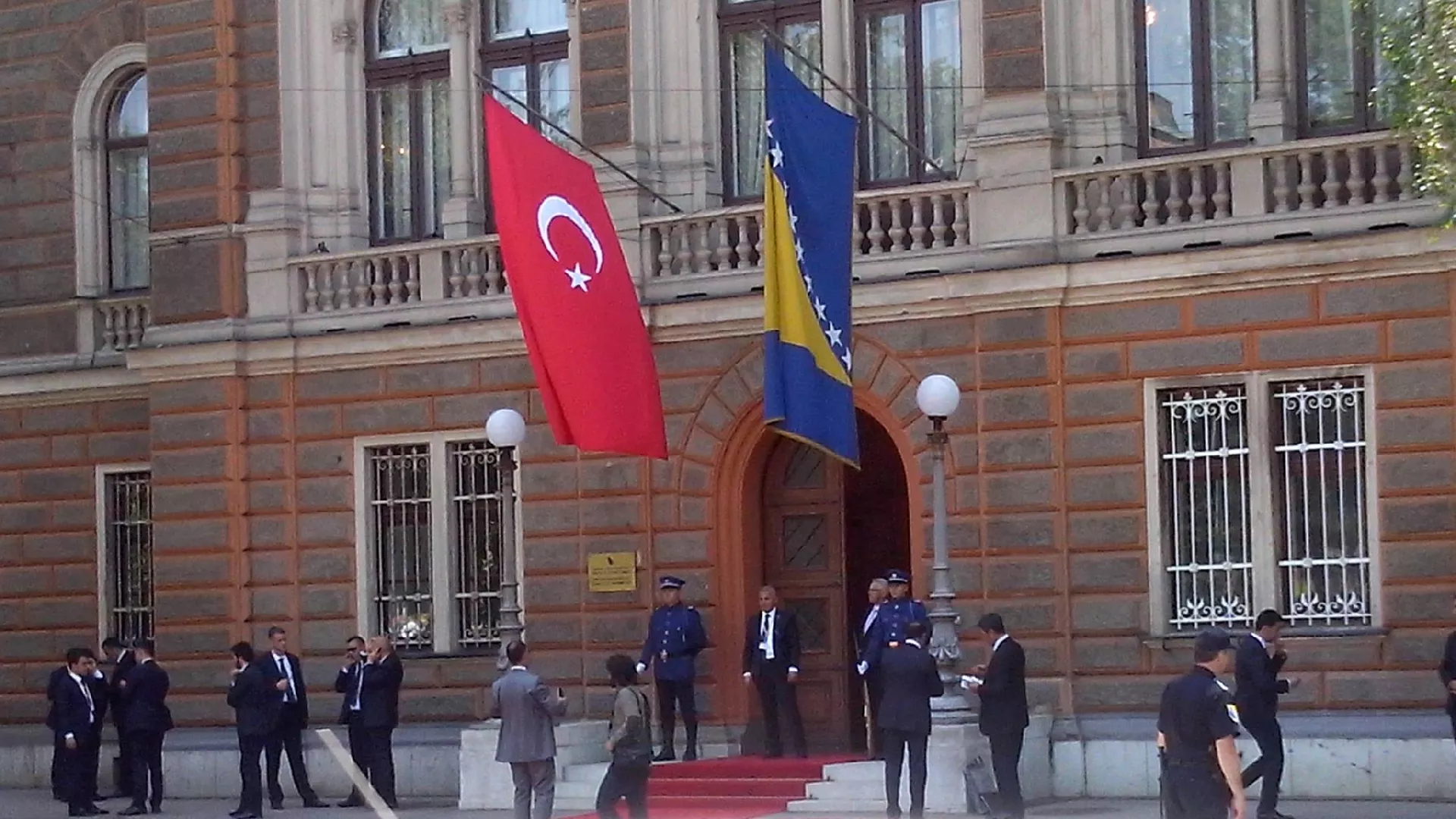 Dolazak turskog predsjednika Recep Tayyip Erdogana u Sarajevo danas je ispred zgrade Predsjedništva BiH ispratio veliki broj građana, piše novinska agencija Patria.
