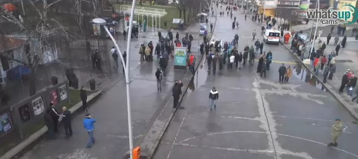 Trg je pust, a okupljeni su se uputili pred zgradu Gradske uprave.