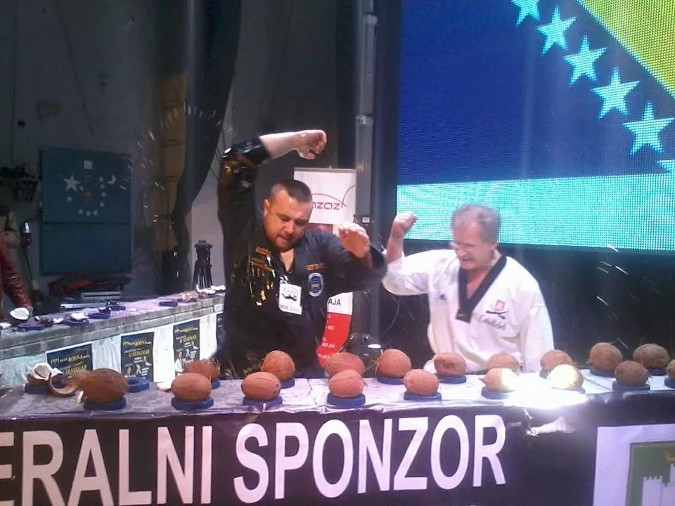 Edin Kajević, majstor tekvandoa (taekwondo) i nosilac crnog pojasa - 4. dan oborio je Ginisov rekord u razbijanju kokosovih oraha laktovima, piše bh. novinska agencija Patria. On je u minuti razbio 40 kokosovih oraha.