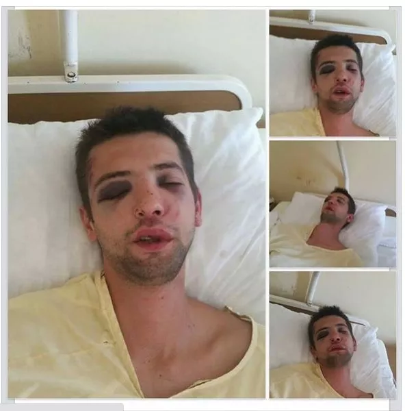 Nakon što su se ovi samo osmijehnuli, iz čista mira oni su skočili na njih, i nanijeli im teške tjelesne povrede. Na slikama je Almir Okić, jedan od povrijeđenih.