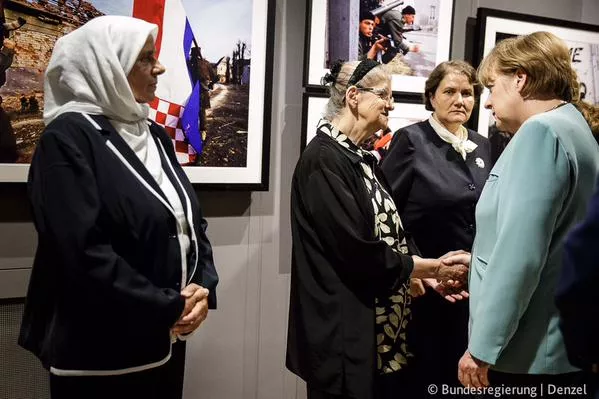 Njemačka kancelarka Angela Merkel tokom svog četverosatnog boravka u Sarajevu susrela se i sa majkama Srebrenice u Memorijalnoj galeriji Srebrenica 11/07/95 . Kako je kazala Šuhra Sinanović, predsjednica Udruženja „Žene Podrinja“ za novinsku agenciju Patria drago im je da je Merkel boravila u Sarajevu, ali bi im draže bilo da je bila u Srebrenici.