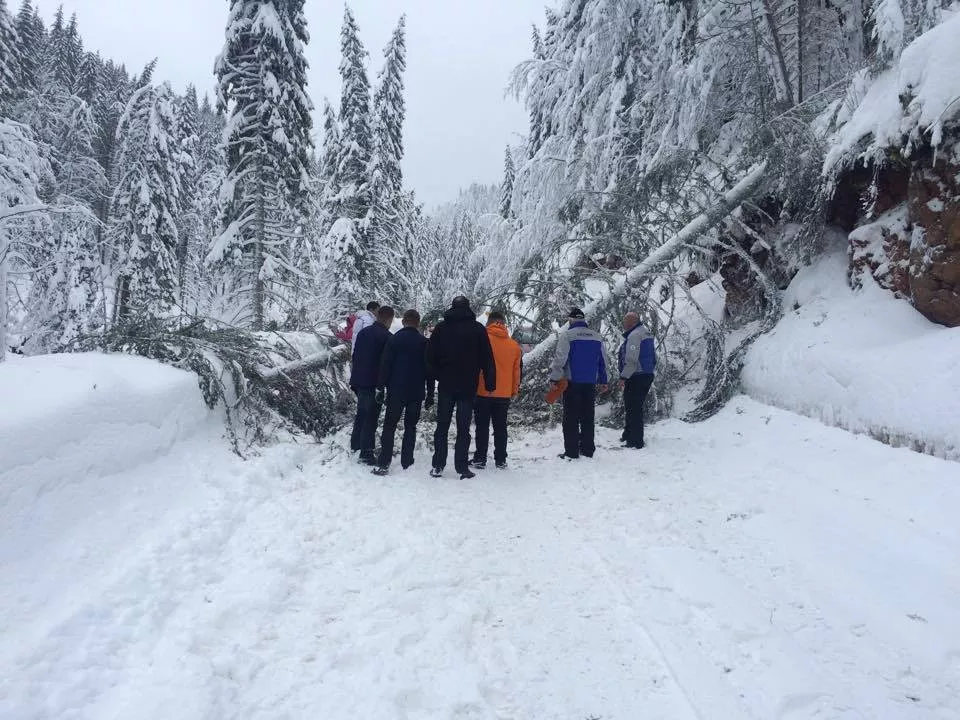 U roku od sat vremena na Jahorini je palo preko 30 cm mokrog snijega što je prouzrokovalo obaranje bora na cestu Pale - Jahorina, piše bh. novinska agencija Patria.