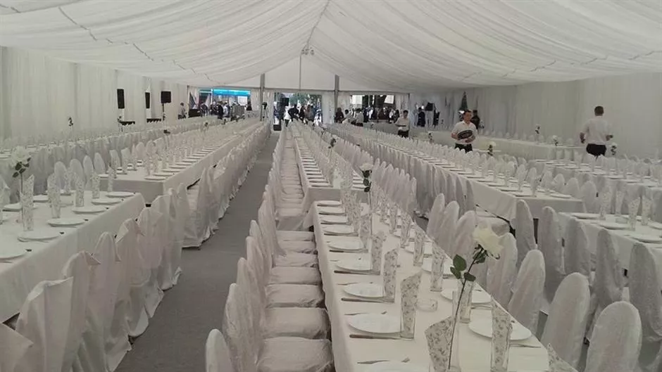 Nije se štedilo, pod šatorom i sa stolicama prekrivenim bijelim svilenim prekrivačima započelo je opštenarodno veselje koje je, sudeći po čelnom stolu, priređeno više u čast Milorada Dodika nego sjećanja na poplavlje, javlja BNTV.