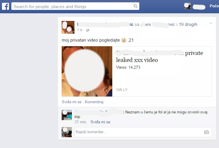 Novi virus na Facebooku poziva vaše prijatelje da pogledaju vašu navodnu pornografsku snimku. Djeluje tako da poveznicu ne ostavlja na vaš, nego na zidovima vaših prijatelja, piše bh. novinska agencija Patria (NAP).