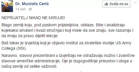 Bilo bi smiješno da nije žalosno i opasno..., napisao je dr. Cerić.