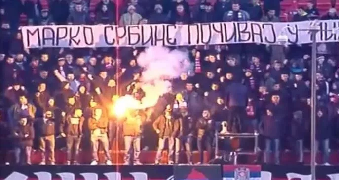 Grupa navijača je prvo istaknula transparent "Marko Srbine, počivaj u miru", da bi nedugo nakon toga počeli skandirati: "Ubij, ubij Turčina".