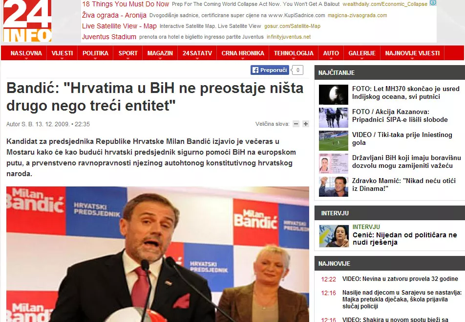 - Ako se unutar institucija BiH ne pronađe rješenje da Hrvati postanu ravnopravni, onda hrvatski narod u BiH neće imati drugu opciju nego tražiti svoj treći entitet. Danas Hrvati od zajamčene ravnopravnosti imaju malo. Ne zagovaram treći entitet s ove govornice, ali sve pokazuje da stvari idu u tom smjeru – kazao je tada Bandić.