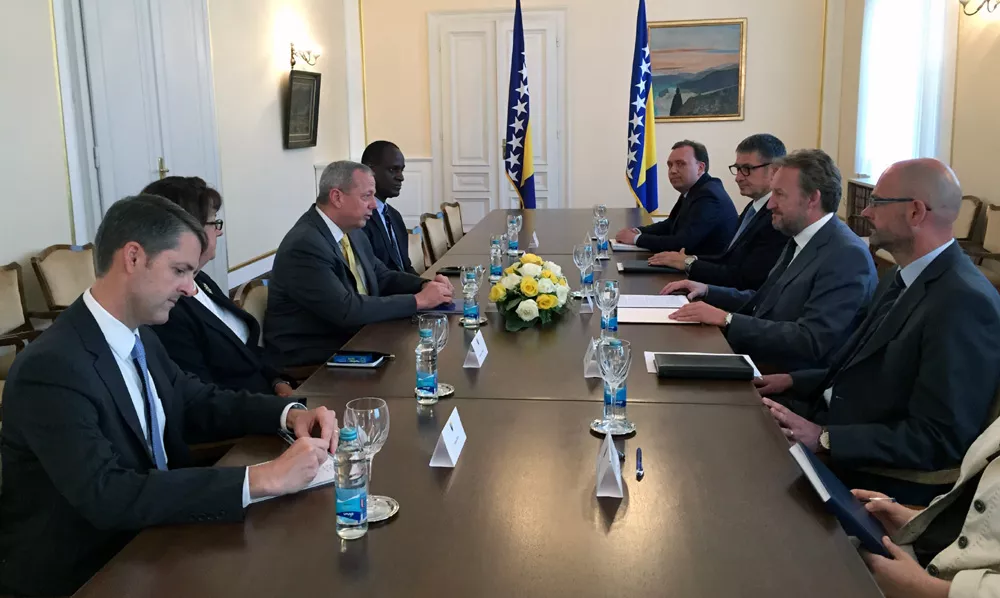 General Allen imao je produktivne sastanke sa članovima Predsjedništva BiH, rukovodstvom Obavještajno-sigurnosne agencije BiH, kao i drugim predstavnicima sigurnosnih i pravosudnih institucija i agencija nadležnih za provođenje zakona. Sastanku su prisustvovali glavni tužilac BiH Goran Salihović, ministri unutrašnjih poslova FBiH i RS Aljoša Čampara i Dragan Lukač, ministar sigurnosti BiH Dragan Mektić i direktori SIPA-e i OSA-e Goran Zubac i Almir Džuvo.