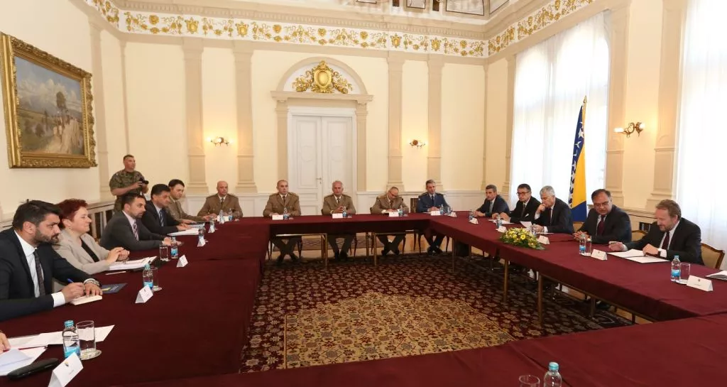 Članovi Predsjedništva BiH su, u skladu sa Ustavom i zakonskim nadležnostima kao Vrhovni komandant nad Oružanim snagama BiH, održali radno-konsultativni sastanak s rukovodstvom Ministarstva odbrane BiH, na čelu sa ministricom odbrane BiH Marinom Pendeš, prenosi novinska agencija Patria.