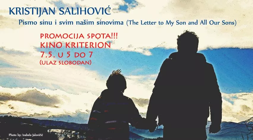 Promocija spota za pjesmu "Pismo sinu i svim našim sinovima" bh. kantautora Kristijana Salihovića održat će se 7. maja 2015. godine u Kinu Kriterion od 17 do 19 sati, piše bh. novinska agencija Patria.