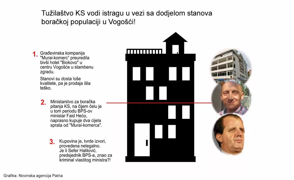 Cijala istraga u ovom predmetu usmjerena je na bivšeg BPS-ovog ministra za boračka pitanja Faida Heću, a kako stvari sada stoje, za malverzacije oko dodjele stanova znao je od samog početka i sam stranački vrh BPS-a na čelu sa predsjednikom stranke Seferom Halilovićem i njegovim sinom Semirom.