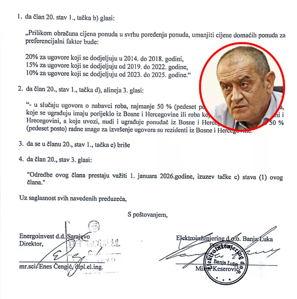 Tako su kompanije na čelu sa „Energoinvestom“ i „Elektroinžinjeringom“ predložile da se prilikom obračuna ponuda umanji cijena domaćih ponuda za preferencijalni faktor, i to za 20 posto za ugovore koji se dodijeljuju u 2014. do 2018., 15 posto za ugovore koje se dodjeljuju od 2019. do 2022. i 10 posto za ugovore od 2023. do 2025. godine.