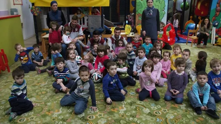 Prvotimci Fudbalskog kluba Sarajevo, Nemanja Anđušić, Marko Mihojević i Samir Radovac posjetili su danas Ustanovu za predškolski odgoj i obrazovanje "Amel i Nur", koja se nalazi u Zagrebačkoj ulici u Sarajevu.