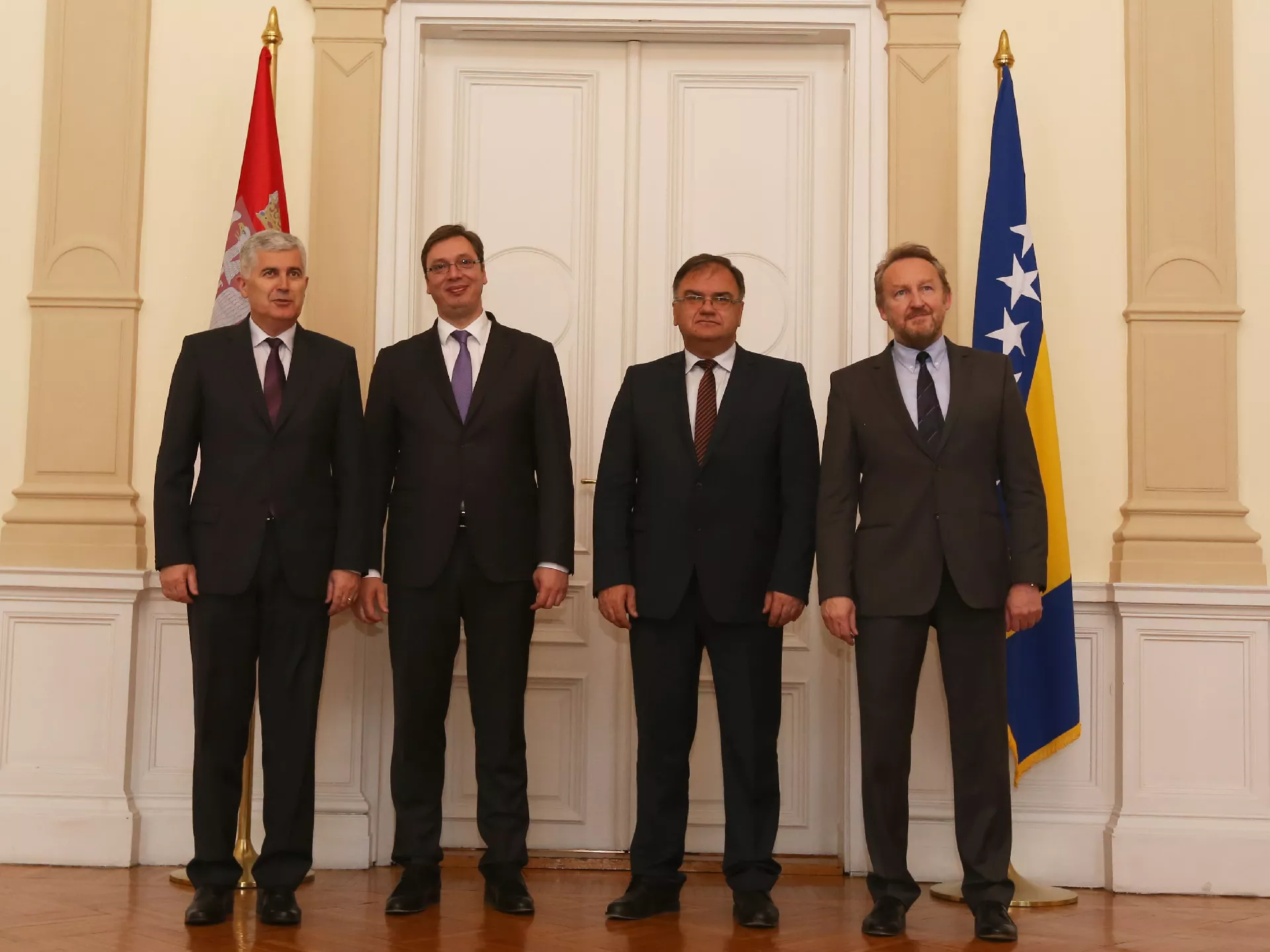 Članovi Predsjedništva BiH primili su u posjetu premijera Republike Srbije Aleksandra Vučića kojeg su informisali o postignutom napretku u okviru evropskih integracija BiH, koji se ogleda u skorašnjem stupanjem na snagu Sporazuma o stabilizaciji i pridruživanju, prenosi bh. novinska agencija Patria.