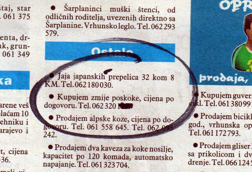 Jedan takav primjer je i primjena zmijskog otrova, a u jednom oglasu u bosanskohercegovačkim dnevnim novinama objavljen je oglas u kojem čovjek otkupljuje otrovne poskoke.