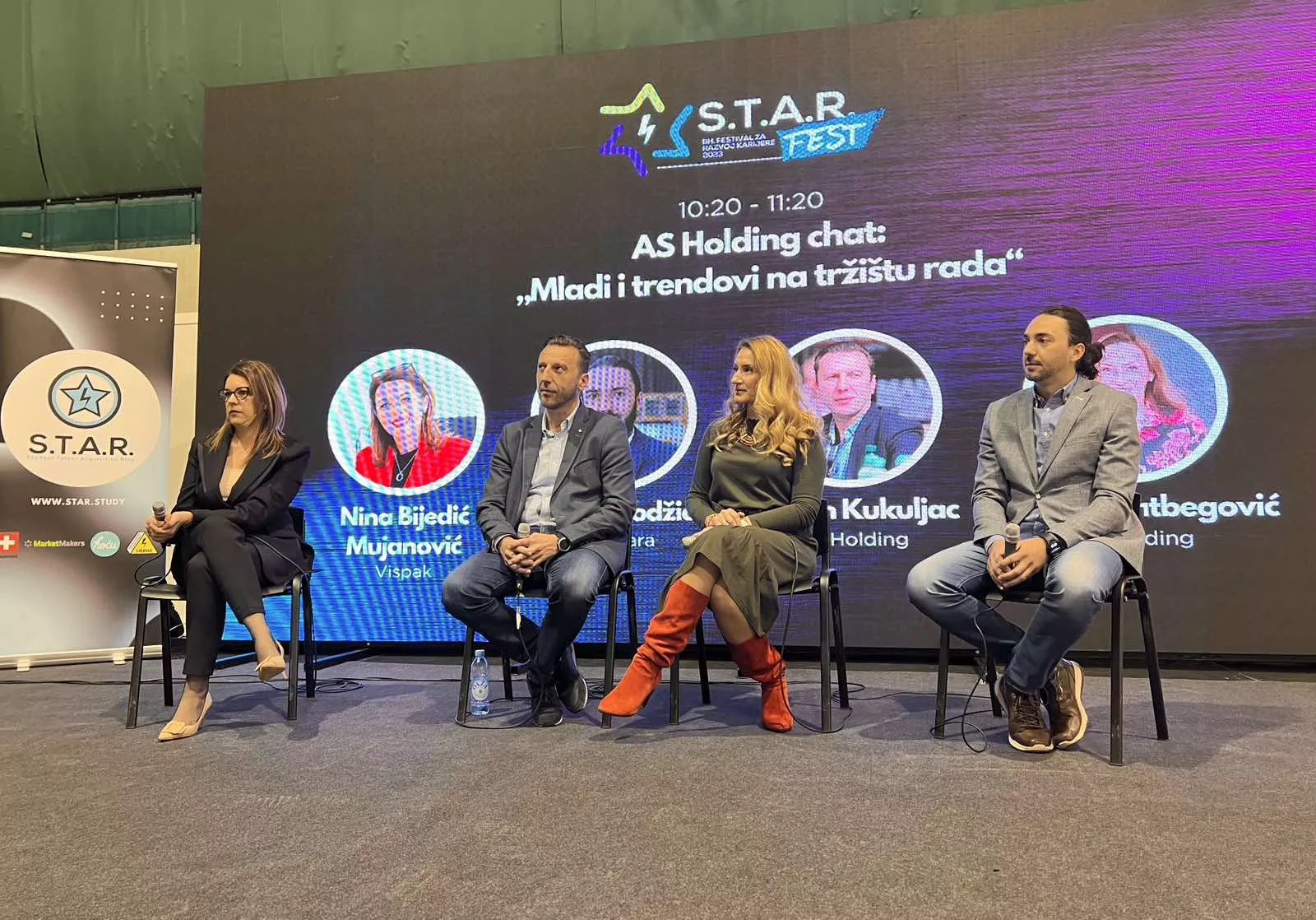 SARAJEVO, (Patria) - Danas je počeo najveći dvodnevni događaj u BiH za promociju razvoja karijere i zapošljavanja mladih pod nazivom STARfest. U prepunom Centru Skenderija okupio se veliki broj mladih ljudi i studenata kako bi iz prve ruke čuli o tržištu rada, poslovima budućnosti uz predstavljanje konkretnih ponuda za mlade – poslova, stažiranja, edukacija, stipendija i dr. AS Holding kao predstavnik jedne od najvećih prehrambenih grupacija u BiH, panelom „Mladi i trendovi na tržištu rada“ zvanično su otvorili prvi STARfest.