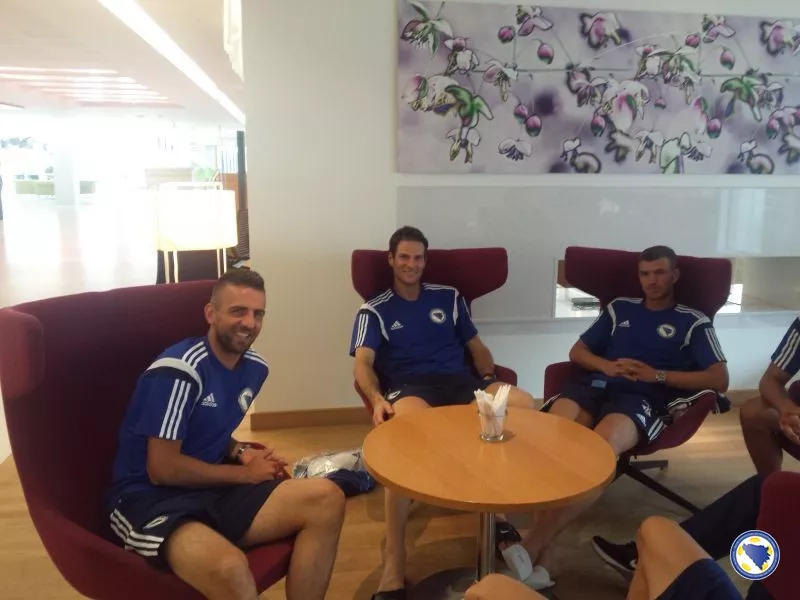 Selektor i njegovi saradnici su zakazali poslijepodne trening u 17:30 a sudeći po reakcijama, igrači su raspoloženi i pauzu nakon ručka su iskoristili da razgovaraju o nedavnim transferima pojedinih reprezentativaca, ali i početku priprema za ove kvalifikacione utakmice.