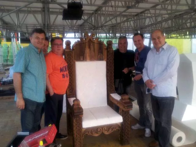 Danas je na stadion došao i naš najpoznatiji pjevač Halid Bešlić, kao i glumac Enis Bešlagić koji su se slikali pored stolice napravljene za papu Franju.