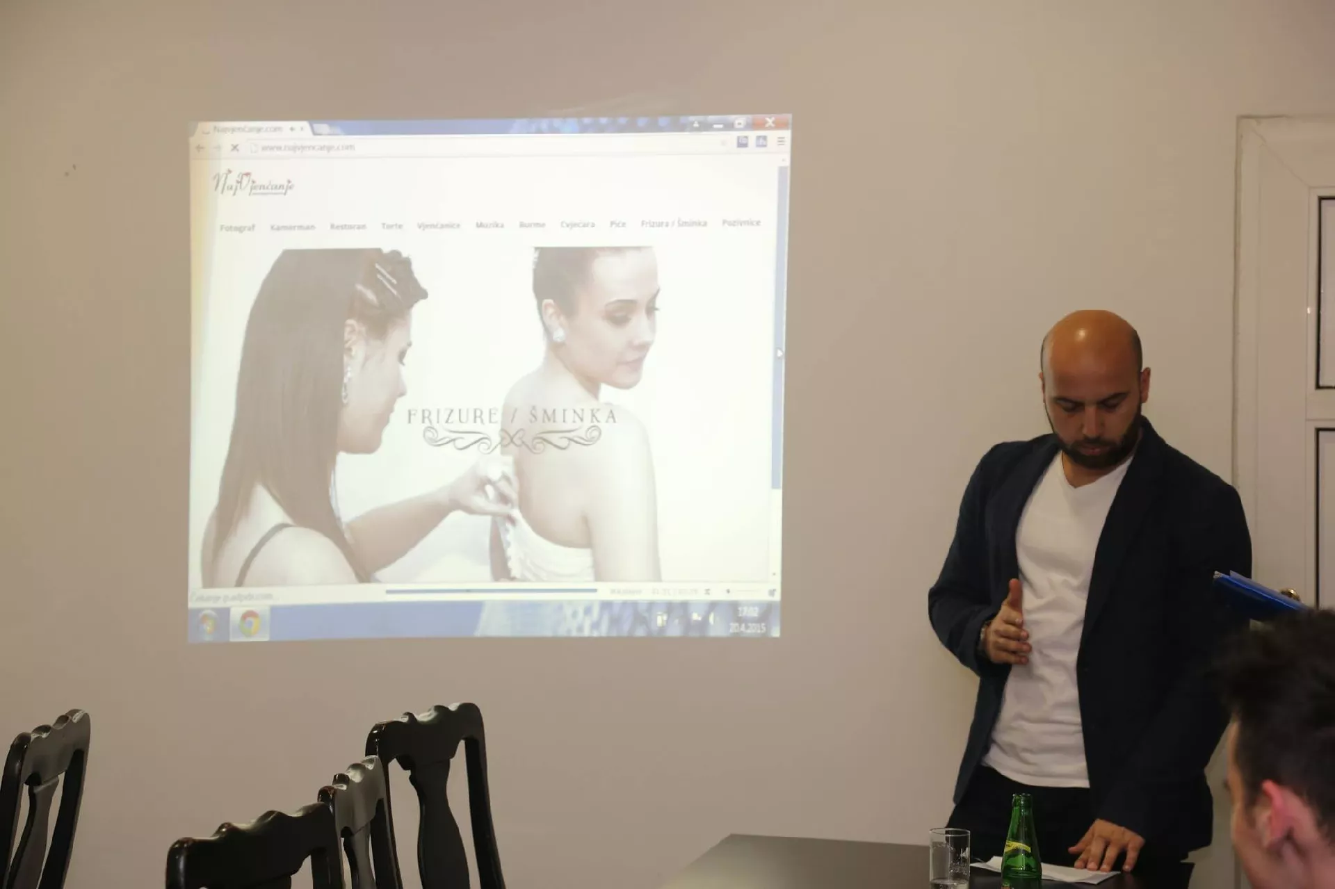 Prije svega želim da se zahvalim svima koji su danas došli da prisustvuju svečanom predstavljanju projekta, a koji sam već duže vrijeme planirao realizovati. Koncept samog projekta osmišljen je nakon dugogodišnjeg percipiranja mnogobrojnih mladenaca na čijim sam svadbama pristustvovao. Osluškujući njihove, da kažem, probleme, odlučio sam se krenuti u realizaciju ovog projekta. Ovaj web portal biće mjesto na kojem će svi oni koji planiraju zajednički život moći u najkraćem vremenskom roku po najpristupačnijim cijenama u zeničkoj regiji ugovoriti sve usluge oko vjenčanja. U toku ove konferencije pobliže će biti objašnjeno koje su to stvari koje će Najvjenčanje.com nuditi – kazao je Benjamin Hazić