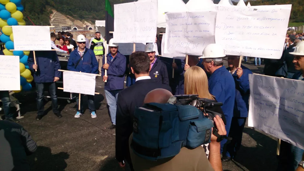 Pred samo otvaranje dionice Sarajevo zapad - Tarčin grupa rudara rudnika "Kreka" koji su u koncernu JP Elektroprivreda sa transparentima je došla kako bi dala podršku rukovodstvu Socijaldemokratske partije BiH, javlja reporter bh. novinske agencije Patria.