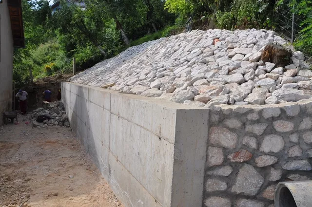 Osim toga izvršena je ugradnja drenažnih cijevi iza zida koje su potom spojene na postojeći gradski kanalizacioni sistem, a napravljeni su i nasipi od kamenog materijala.