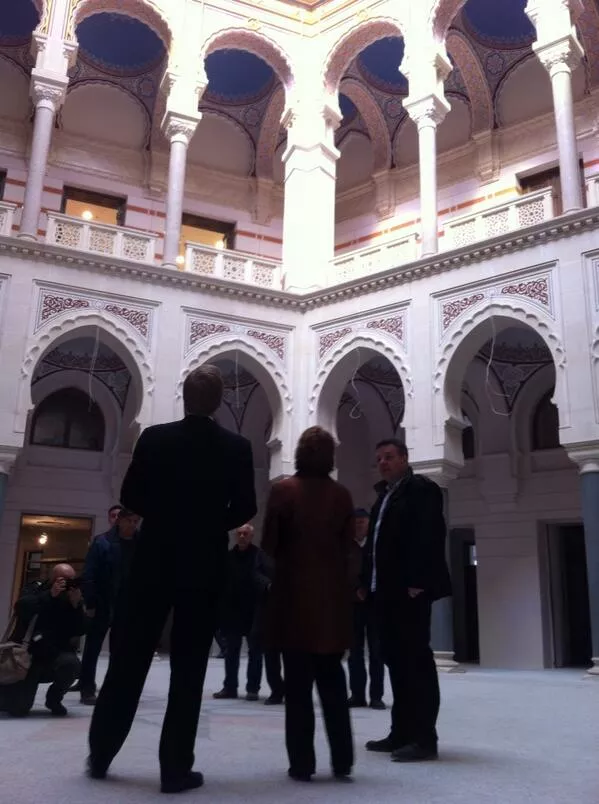 Visoka predstavnica Evropske unije za vanjsku politiku i sigurnost Ketrin Ešton (Catherine Ashton) obišla je sarajevsku Vijećnicu, koja se obnavlja i sredstvima Evropske unije, objavila je na svom twitter profilu Maja Kocijančić, portparol baronese Ešton, javlja bh. novinska agencija Patria (NAP).