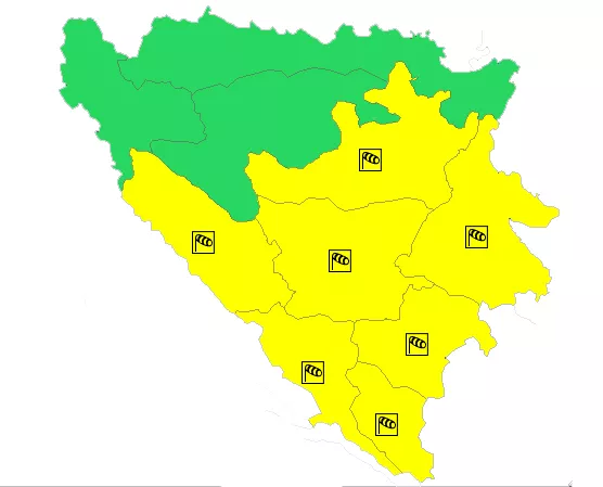 Međutim, ponovo je upaljen žuti meteoalarm i to zbog vjetra, a koji će u područjima Foče, Livna, Mostara, Sarajeva, Trebinja, Tuzle i Višegrada dostizati brzinu i do 50 kilometara na sat. Ovo su za naše prilike jaki udari vjetra
