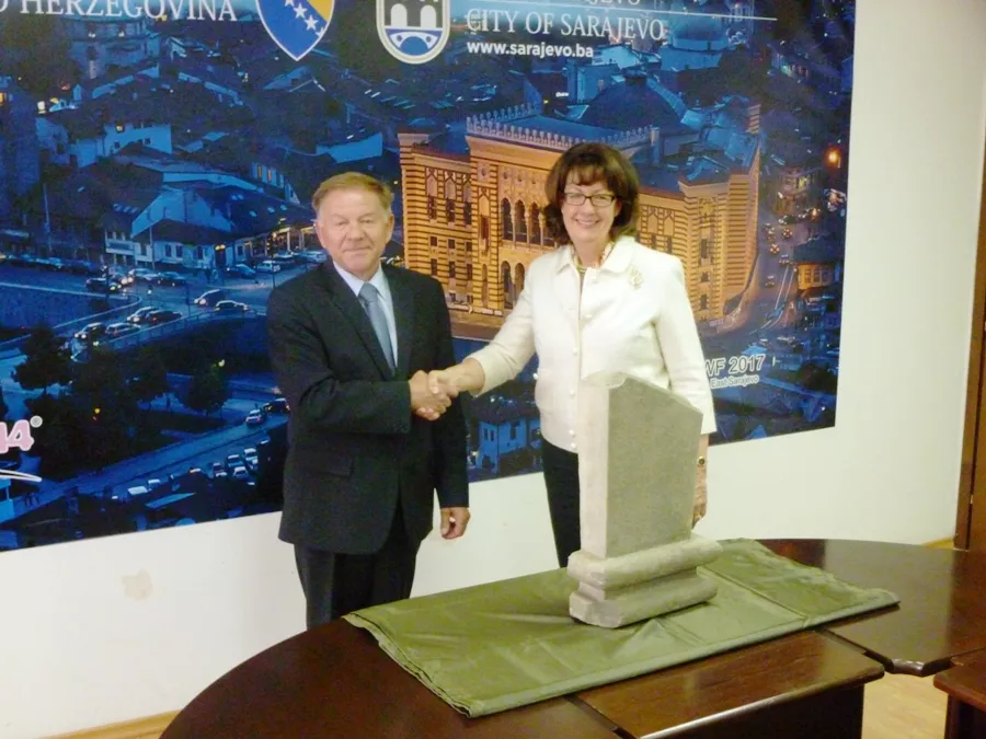 Ambasadorica Cormack se zahvalila gradonačelniku i građanima Sarajeva i BiH što su darovali ovaj kamen kulturnog naslijeđa svim Amerikancima koji će ih podsjećati na vezu sa BiH.