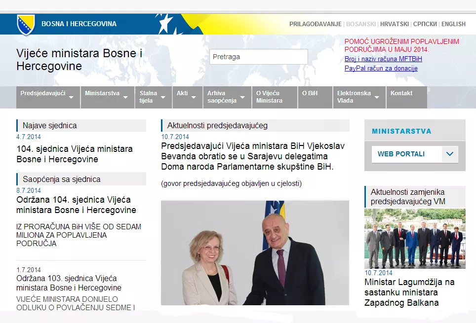 Vijeće ministara BiH također nije bilo ažurno, pa predsjedavajući Vjekoslav Bevanda „još uvijek drži govor u Parlamentu BiH“.