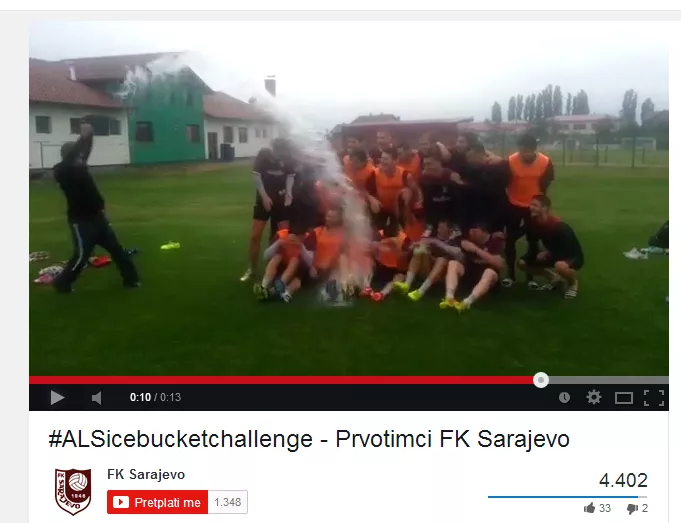 Prvotimci fudbalskog kluba FK Sarajevo pridružili su se kampanji „Ice Bucket Challenge“, hladnom vodom zalili su se nakon jučerašnjeg treninga u Bijeljini, piše bh. novinska agencija Patria (NAP).