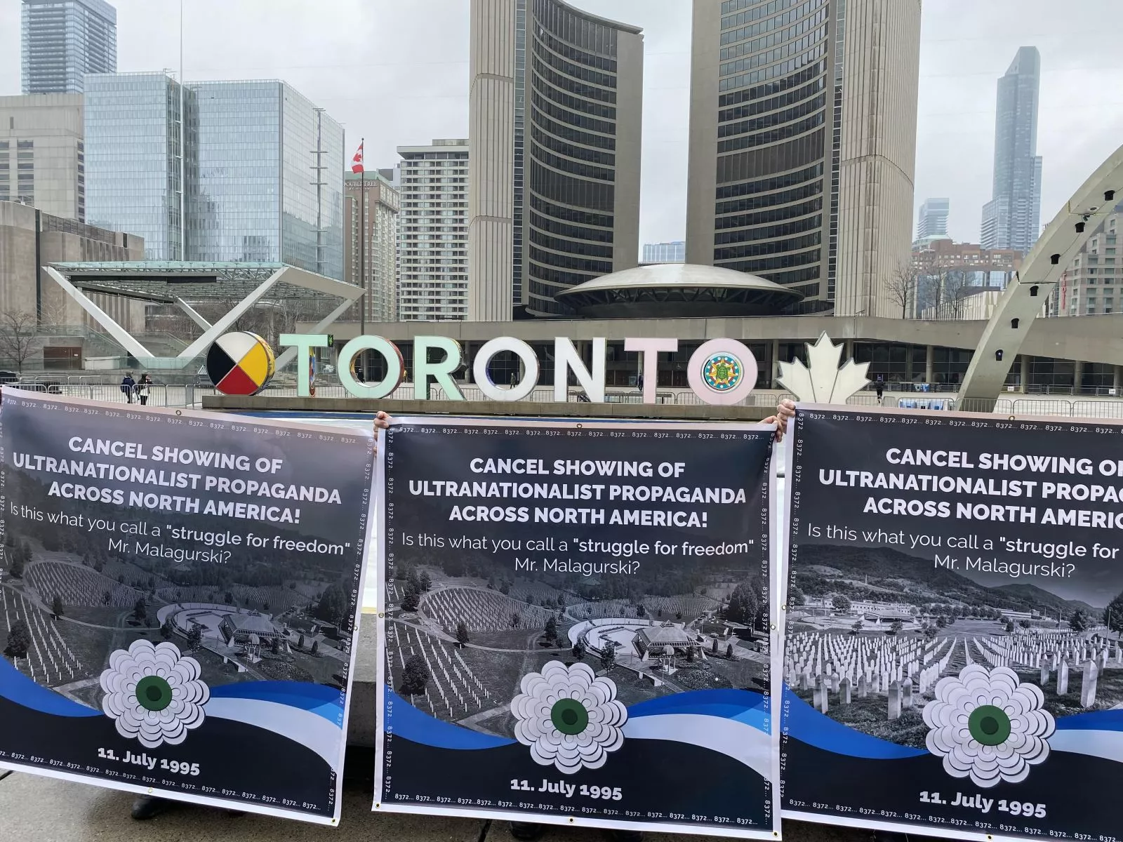 Takođe protest je održan i ispred zgrade Skupštine grada Toronta.