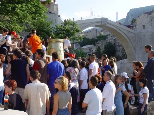Danas je u okviru 449. skokova sa Starog mosta obilježena 11. godišnjica uspostavljanja Ginisovog (Guinness) rekorda najveće džezve na svijetu i ulaska u najpopularniju knjigu svjetskih atrakcija. Prije tačno 11 godina pod Starim mostom u Mostaru, spomenikom nulte kategorije svjetske baštine UNESCO-a, za vrijeme skokova sa Starog mosta ispečeno je u najvećoj džezvi na svijetu 650 litara Vispakove Zlatne džezve, a građani Mostara popili su 8.000 fildžana prave bosanske kafe, prenosi bh. novinska agencija Patria.