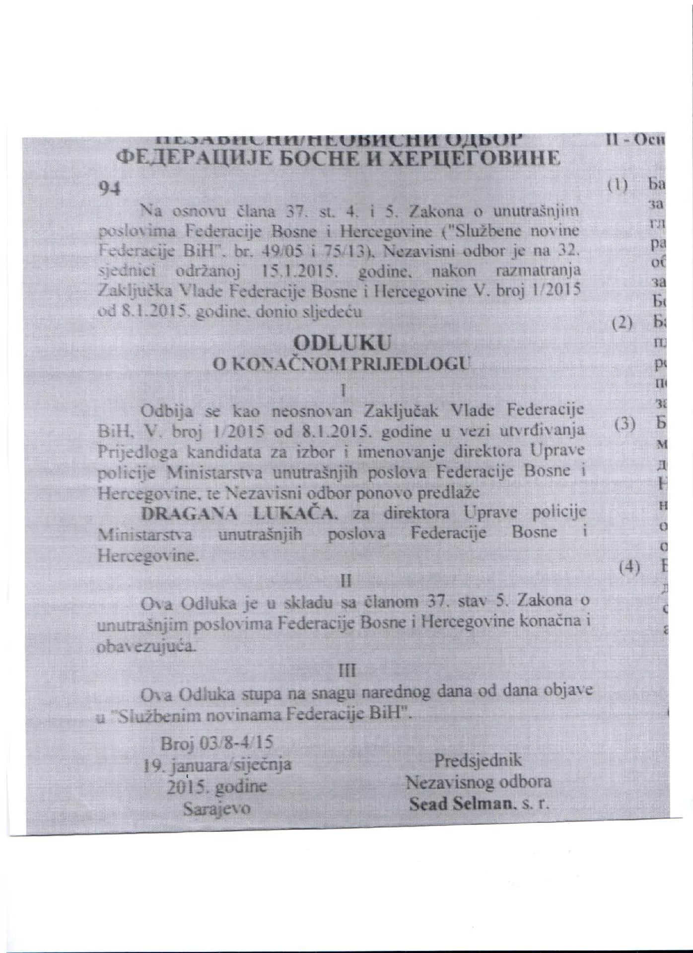 Kome je to prijedlog, kome predlaže Lukača za direktora, kada u Odluci stoji da stupa na snagu narednog dana od dana objave u Službenim novinama Federacije BiH.