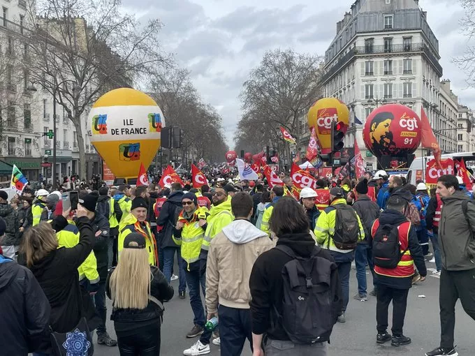 Željeznički saobračaj je poremećen, neke škole su zatvorene, na ulicama se gomila smeće, dok je prekinuta proizvodnja električne energije u sklopu pritiska sindikata na vladu da povuče zakon koji povećava dob za odlazak u penziju na 64 godine.