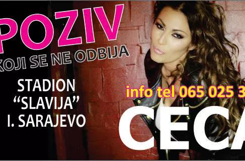 Srbijanska folk pjevačica Ceca, supruga ubijenog ratnog zločinca Željka Ražnatovića Arkana, koji je odgovoran za smrt više hiljada bošnjačkih civila tokom srpske agresije na Bosnu i Hercegovinu, 30. avgusta ove godine održat će koncert na stadionu FK Slavija u Lukavici, piše bh. novinska agencija Patria (NAP).