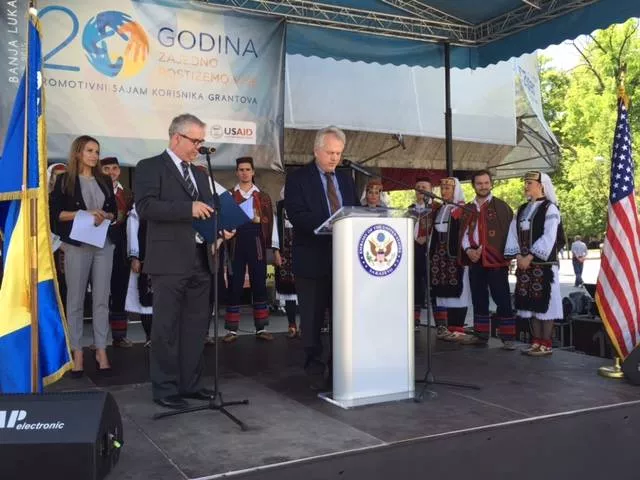 Otpravnik poslova Ambasade SAD u BiH, Nicholas Hill, zajedno sa predstavnicima gradskih vlasti Banja Luke, otvorio je danas sajam korisnika grantova američke ambasade 2014, pri čemu je istakao da budućnost BiH zavisi od promovisanja vrijednosti i ciljeva koji prevazilaze etničku, rodnu ili vjersku pripadnost, a organizacije civilnog društva su suština tih nastojanja, prenosi bh. novinska agencija Patria.