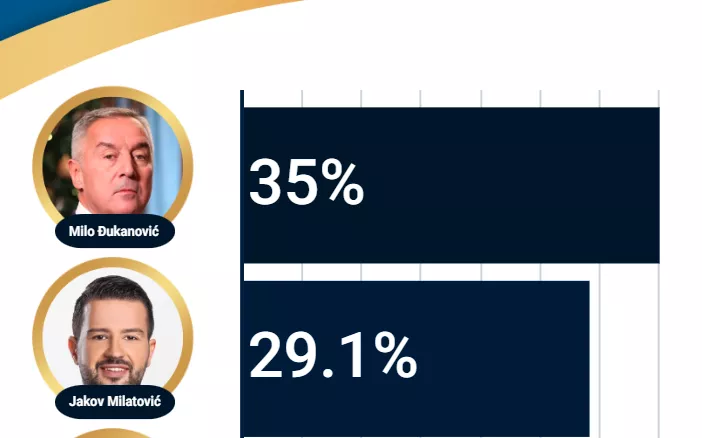 Njegov prvi pratitelj je Jakov Milatović, kandidat Pokreta Evropa sad, koji je osvojio 29,1 posto.