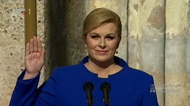 - Prisežem svojom čašću da ću dužnost predsjednika Republike Hrvatske obavljati savjesno i odgovorno, na dobrobit hrvatskog naroda i svih hrvatskih državljana. Kao hrvatski državni poglavar: držat ću se Ustava i zakona, brinuti se za poštovanje ustavnopravnog poretka Republike Hrvatske, bdjeti nad urednim i pravednim djelovanjem svih tijela državne vlasti, čuvati nezavisnost, opstojnost i jedinstvenost države Hrvatske. Tako mi Bog pomogao – izgovorila je hrvatska predsjednica kroz suze.