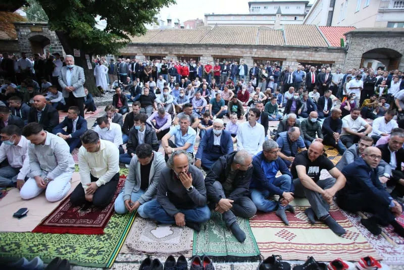 Iako je u džamijama prisustvovao veliki broj vjernika zbog epidemioloških mjera držan je razmak u unutrašnjem dijelu Gazi Husref begove džamije gdje je bila centralna bajramska svečanost.