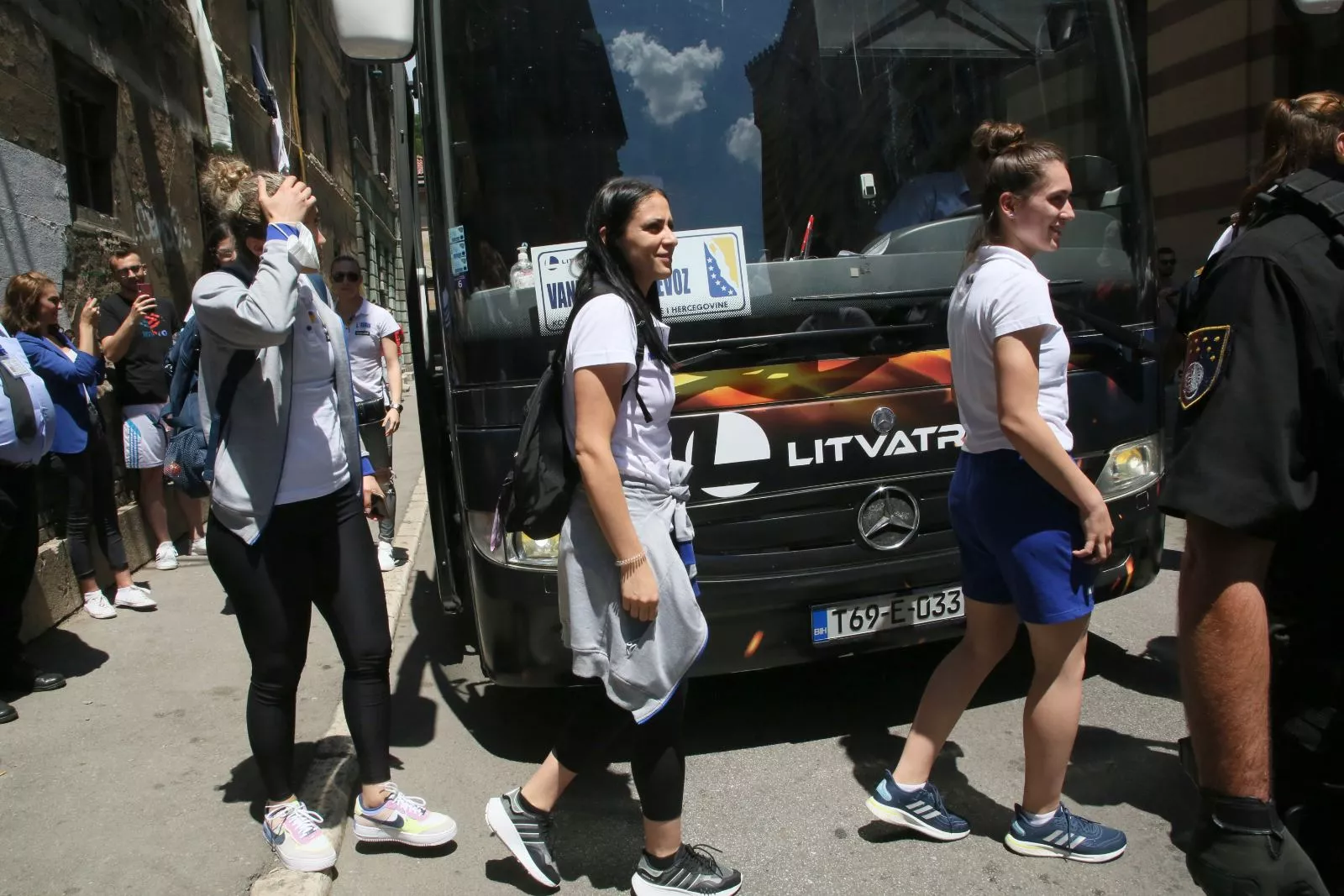 SARAJEVO, (Patria) - Košarkašice Bosne i Hercegovine došle su do Vijećnice u Sarajevu gdje počinje press konferencija.