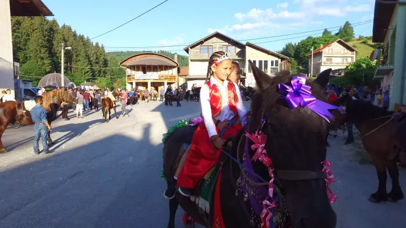 SARAJEVO, (Patria) - Brojni konjanici različitih starosnih dobi, odjeveni u tradicionalne nošnje, nakon učenja odlomaka iz Kur’ana i dove, krenuli su ka najvećem dovištu muslimana u Evropi, Ajvaz-dedinoj stijeni u Pruscu.