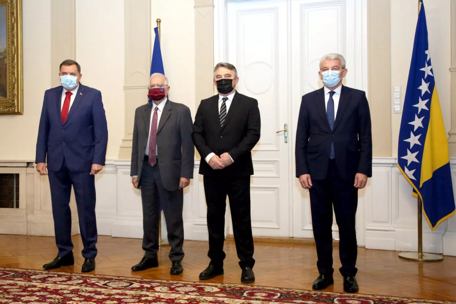 Predsjedavajući Predsjedništva Bosne i Hercegovine Milorad Dodik i članovi Predsjedništva BiH Željko Komšić i Šefik Džaferović primili su Borrella u zgradi Predsjedništva BiH. Sastanak je u toku, a nakon sastanka planirane su izjave za medije.