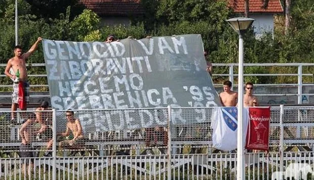 -Prijateljska utakmica između FK Rudar iz Prijedora i FK Jedinstvo iz Bihaća, bila je sve samo ne - prijateljska. Na prijedorskom gradskom stadionu u nedjelju u poslijepodnevnim satima, navijači iz Bihaća, koji sebe nazivaju "Sila nebeska" razvukli su transparent sa uvredljivim sadržajem: "Genocid vam zaboraviti nećemo Srebrenica 95 Prijedor 92 ", a zatim raširili i ratnu zastavu Republike BiH.