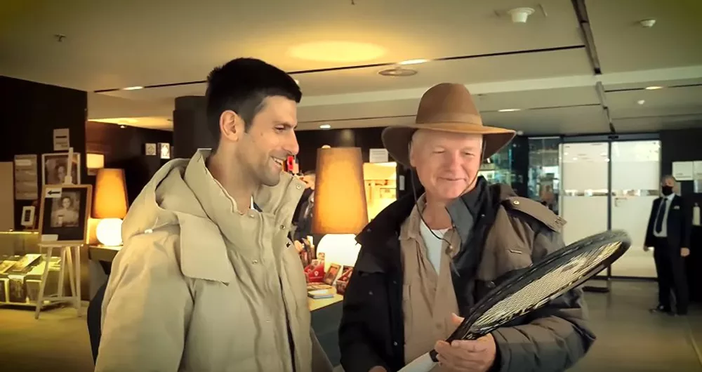 "Reket stiže svježe korišten iz Pariza. Postoji nekoliko različitih kompanija koje ih izrađuju, a ovaj je od jedne od najboljih. Desetak godina me služio, s njim sam osvojio neke od najvećih turnira na svijetu i sa zadovoljstvom ti ga poklanjam, da i tebe služi, energetski, ako ne praktično", kazao je Novak Đoković te poklonio reket Osmanagiću, koji je naglasio kako je ponosan na Novaka i na njihovo prijateljstvo.
