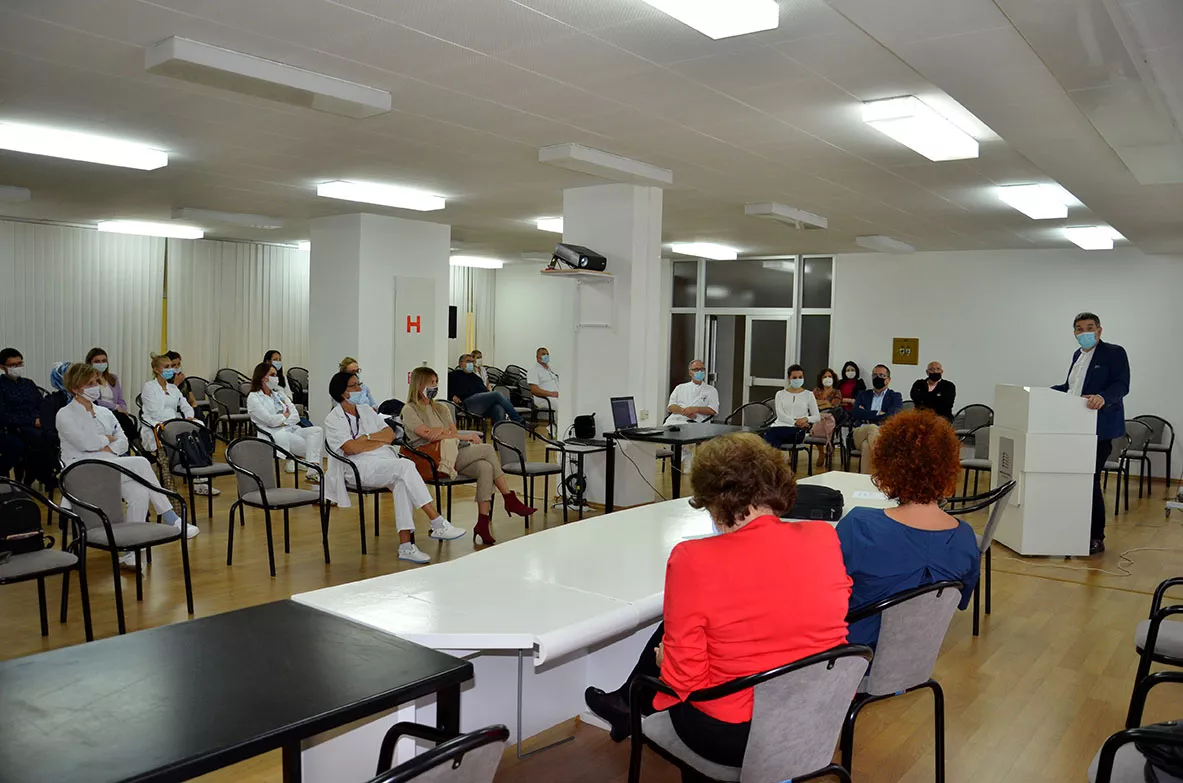 Učesnike ovog stručnog skupa, koji se održava uz poštivanje epidemioloških mjera, na početku je pozdravio i poželio sretan rad prof.dr. Ismet Gavrankapetanović, v.d. direktora Opće bolnice.